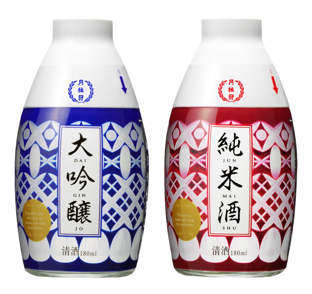 「大吟醸」「純米」のおちょこ付の小びん商品(180ml)で、