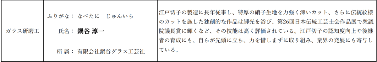 令和7年度、鍋谷淳一(鍋谷グラス工芸社代表(大田区))が認定されました。