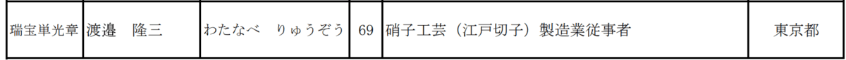 秋の勲章受章者に、渡邉隆三(渡邉硝子加工場。江東区大島)が選ばれました。