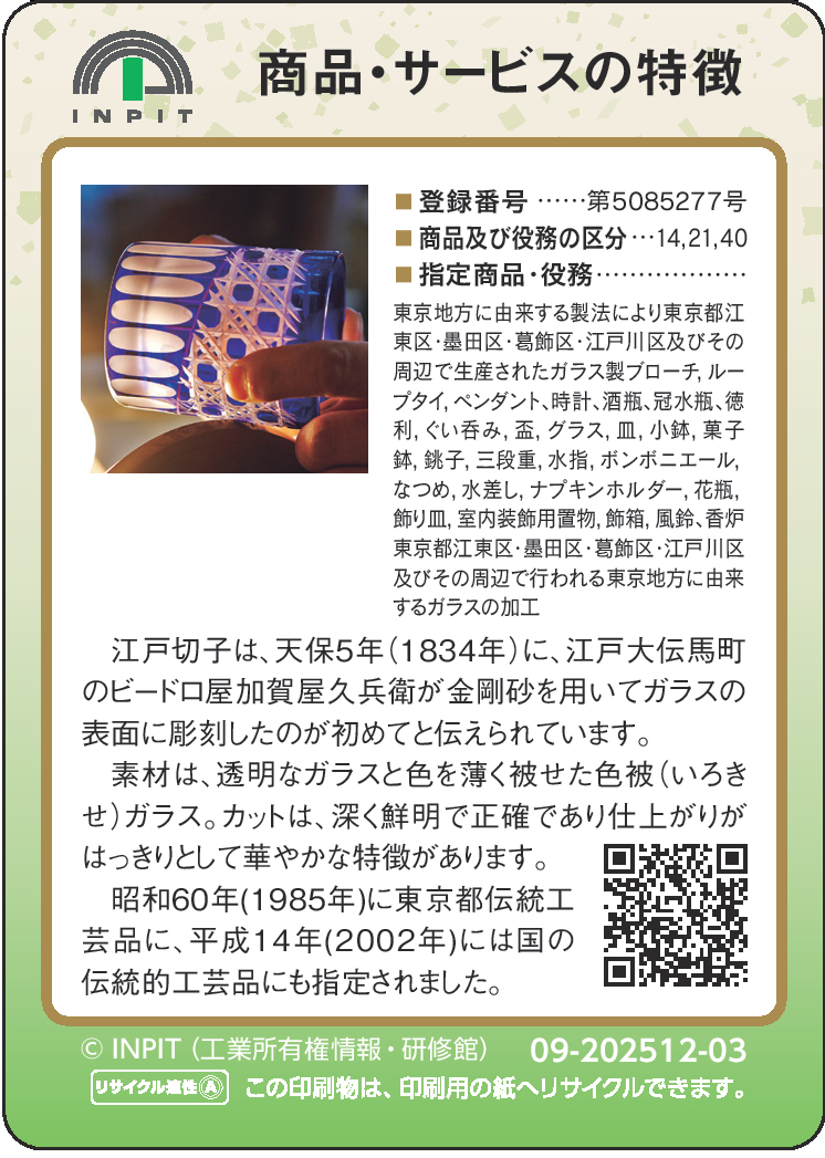 この度、2025年末発表の第9弾として江戸切子も登録・発行頂きました。