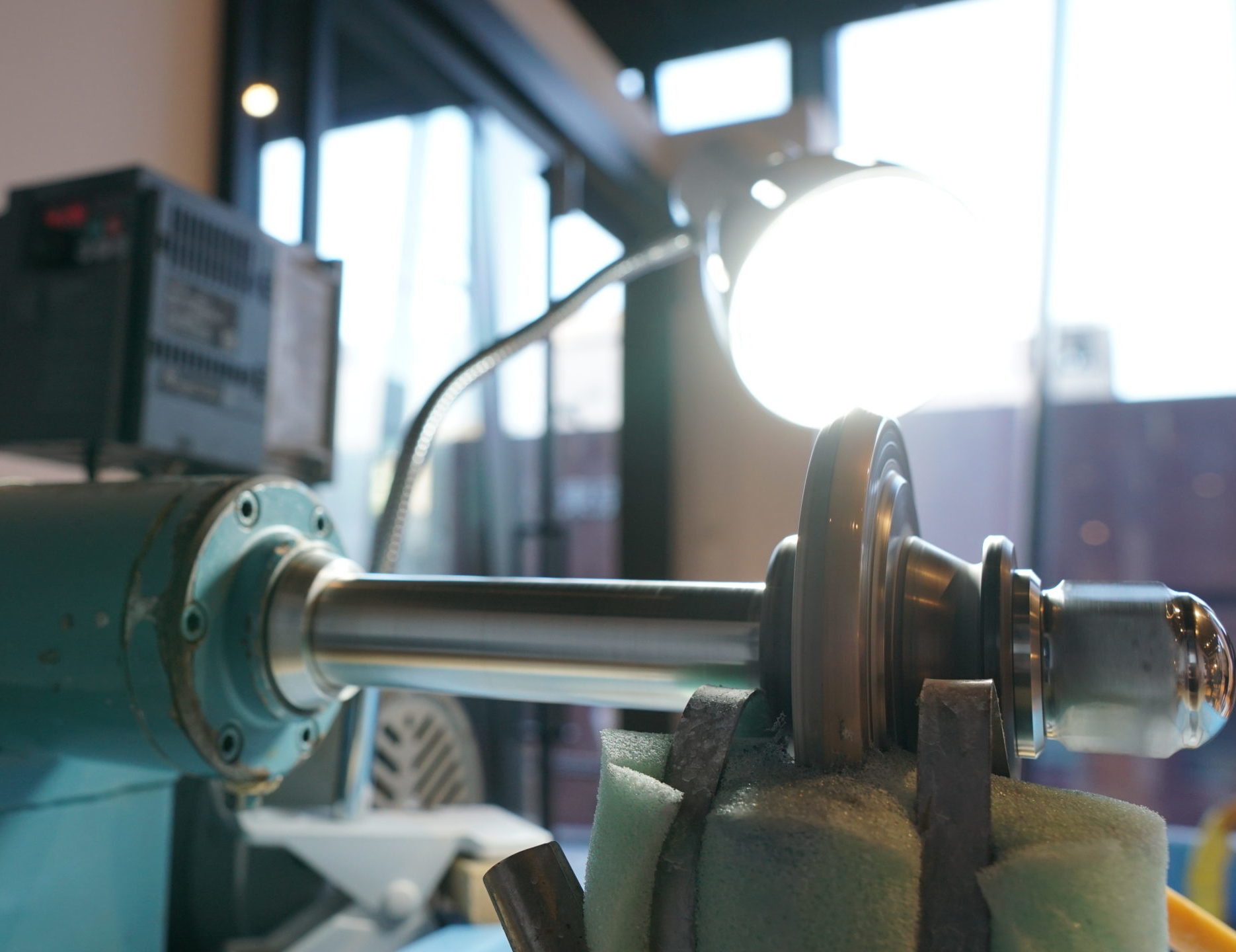 写真は、実際の切子実演・体験用の小型機械です。