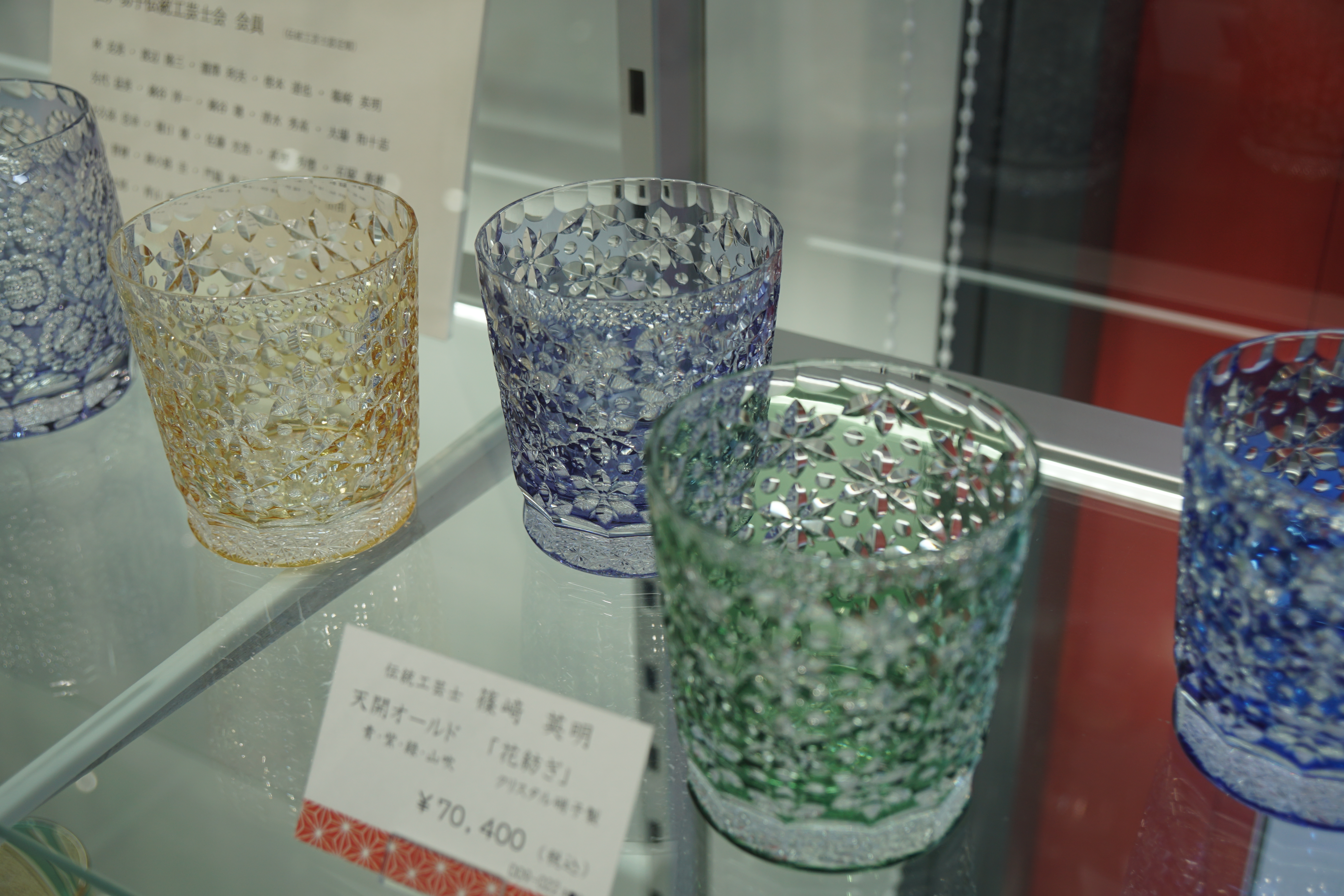 江戸切子の日本の伝統工芸士に認定された職人の作品も展示販売。